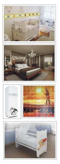 Uma linha variada de adesivos decorativos com aplique de resina, para todos os ambientes.